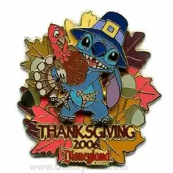 Stitch with Turkey is a Limited Edition (LE) 1000 pin from the Thanksgiving pin series. It was originally released on , 2006 and was available from Disneyland Resort .