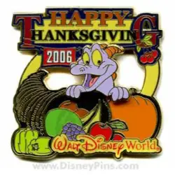 Happy Thanksgiving 2006 - Figment is a Limited Edition (LE) 1000 pin from the Thanksgiving pin series. It was originally released on , 2006 and was available from Walt Disney World .