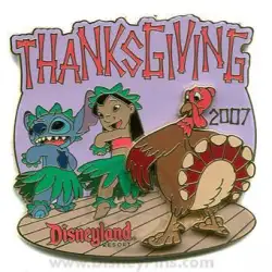 Thanksgiving 2007 - Lilo and Stitch is a Limited Edition (LE) 1000 pin from the Thanksgiving pin series. It was originally released on , 2007 and was available from Disneyland Resort .