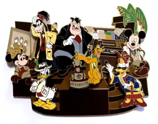 Pin features Daisy Duck , Donald Duck , Goofy , Mickey Mouse , Minnie Mouse , Pluto and Pete