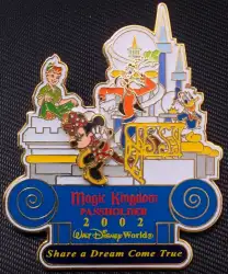Share A Dream Come True is a Limited Edition (LE) 7500 pin from the 100 Years of Magic Annual Passholder Exclusive Parade Series pin series. It was originally released on , 2002 and was available from Walt Disney World .