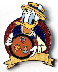 Donald Duck Dressed as Scoop Sanderson - Pin Trading Anniversary - Board is an Open Edition pin from the Celebrating Disney Pins 25: as Scoop Sanderson pin series. It was originally released on , 2024 and was available from Multiple Sources (WDW, DLR, etc.).