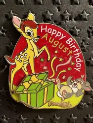 Thumper - Happy Birthday - August is a Limited Edition (LE) 1000 pin from the Bambi pin series. It was originally released on , 2008 and was available from Disneyland Resort .