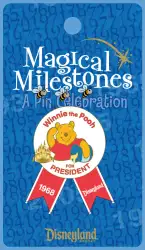 1968 - Winnie the Pooh For President is an Open Edition pin from the Magical Milestones: A Pin Celebration pin series. It was originally released on , 2005 and was available from Disneyland Resort .