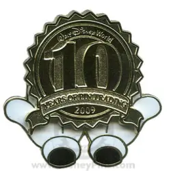 Disney Pin Trading 10th Anniversary - Sculpted Logo is a Limited Edition (LE) 1500 pin from the Disney Pin Trading 10th Anniversary pin series. It was originally released on , 2009 and was available from Walt Disney World .