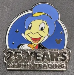 Jiminy Cricket is an Open Edition pin from the DLR Hidden Disney Series 2025 Wave A: Pin Trading 25th Anniversary pin series. It was originally released on , 2025 and was available from Disneyland Resort .