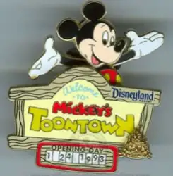 1993 - Mickey's Toontown Opens is an Open Edition pin from the Magical Milestones: A Pin Celebration pin series. It was originally released on , 2005 and was available from Disneyland Resort .