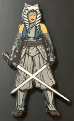 Ahsoka with lightsaber down is an Open Edition pin in the Grogu & Ahsoka Pin Set 4-pin set from the Star Wars pin series. It was available from an Officially Licensed Disney trading pin vendor (see description for more information).