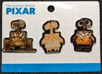 WALL-E 3-Pin Set is an Open Edition 3-pin set from the The Science Behind PIXAR Disney pin series. It was originally released on , 2024 and was available from Disney Store Japan .