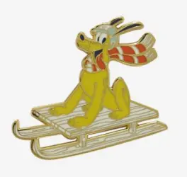 Pluto Sledding is an Open Edition pin from the BoxLunch Exclusive - Mickey & Friends Skiing Adventure Blind Box pin series. It was originally released on , 2024 and was available from an Officially Licensed Disney trading pin vendor (see description for more information).