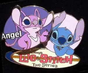 Stitch & Angel is a Limited Edition (LE) 900 pin from the Mickey & Pals - Lilo and Stitch: The Series pin series. It was originally released on , 2005 and was available from an Officially Licensed Disney trading pin vendor (see description for more information).
