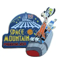 50th Anniversary - Goofy and Donald - Passholder Exclusive is a Limited Edition (LE) 3000 pin from the Space Mountain pin series. It was originally released on , 2025 and was available from Walt Disney World .