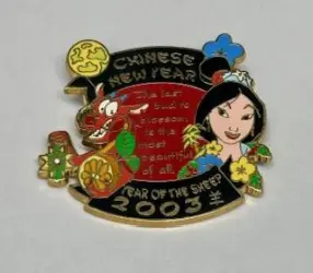 Mulan and Mushu is a Limited Edition (LE) 2000 pin from the Chinese New Year pin series. It was originally released on , 2003 and was available from Walt Disney World .