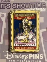 Lumiere is a Limited Edition (LE) 1500 pin from the It’s Showtime Poster Series pin series. It was originally released on , 2025 and was available from Disneyland Resort .
