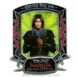 Prince Caspian Opening Day is a Limited Edition (LE) 3000 pin from the The Chronicles of Narnia pin series. It was originally released on , 2008 and was available from Walt Disney World .