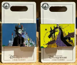 Maleficent is an Open Edition pin from the Hinged Villain Transformations Series pin series. It was originally released on , 2024 and was available from Shanghai Disney Resort .