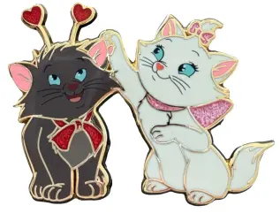 Smitten Kittens - Marie & Berlioz is a Limited Edition (LE) pin from the Fantasy Pin Series: Darla's Fairy Tails pin series. It is an Unlicensed (Fantasy) pin, so therefore it is not allowed to be traded in the Disney Parks.