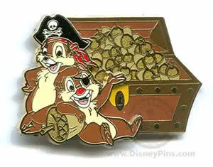 Chip and Dale is an Open Edition pin from the Pirates of the Caribbean - Legend of the Golden Pins pin series. It was originally released on , 2006 and was available from Disneyland Resort .