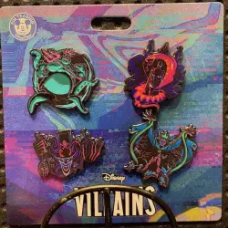 Ursula, Jafar, Dr Facilier, Evil Queen - Complete 4-pack is an Open Edition pin from the Neon Villains Booster Set pin series. It was originally released on , 2020 and was available from Multiple Sources (WDW, DLR, etc.).