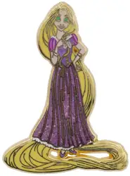 Rapunzel Playing with Hair is an Open Edition pin from the Princess Glitter Pins pin series. It was originally released on , 2012 and was available from Multiple Sources (WDW, DLR, etc.).