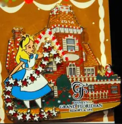 Grand Floridian- Alice is a Limited Edition (LE) 1200 pin from the Gingerbread House Collection 2014 pin series. It was originally released on , 2014 and was available from Multiple Sources (WDW, DLR, etc.).