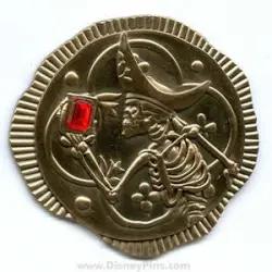 Gold Coin with Ruby Stone is an Open Edition pin from the Pirates of the Caribbean - Legend of the Golden Pins pin series. It was originally released on , 2006 and was available from Disneyland Resort .
