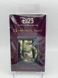 Yoda is a Limited Edition (LE) 300 pin from the D23 15 Fan-tastic Years - 15th Celebration Portraits Collection pin series. It was originally released on , 2024 and was available from Disney Employee Center .
