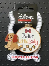 Perfect Little Lady - Lady is a Limited Edition (LE) 400 pin from the Cross Stitch Messages pin series. It was originally released on , 2025 and was available from Disney Studio Store Hollywood / Soda Fountain .