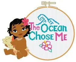 The Ocean Chose Me - Baby Moana is a Limited Edition (LE) 400 pin from the Cross Stitch Messages pin series. It was originally released on , 2025 and was available from Disney Studio Store Hollywood / Soda Fountain .