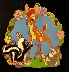 Bambi, Flower and Thumper is a Limited Edition (LE) 100 pin from the Bambi pin series. It was originally released on , 2009 and was available from Disney Auctions .