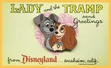Lady and the Tramp is a Limited Edition (LE) 1000 pin from the Dateline: Disneyland 1955 - Art Corner Postcard Collection pin series. It was originally released on , 2010 and was available from Disneyland Resort .