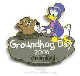 Groundhog Day 2006 - Donald Duck is a Limited Edition (LE) 1000 pin from the Groundhog Day pin series. It was originally released on , 2006 and was available from Disneyland Resort .