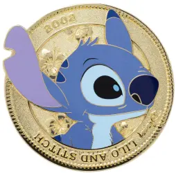 Wave 3 - Stitch - Lilo and Stitch is a Limited Edition (LE) 300 pin from the Pink A La Mode (PALM) - Golden Character Coin Series pin series. It was originally released on , 2025 and was available from an Officially Licensed Disney trading pin vendor (see description for more information).