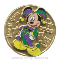 Jester Mickey on Medallion is a Limited Edition (LE) 2000 pin from the Mardi Gras pin series. It was originally released on , 2009 and was available from Multiple Sources (WDW, DLR, etc.).