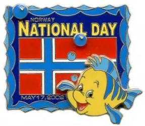 Flounder is a Limited Edition (LE) 4500 pin from the Norway National Day pin series. It was originally released on , 2002 and was available from Walt Disney World .