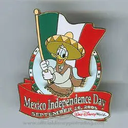 Donald Duck with a sombrero, serape, and the Mexican flag is a Limited Edition (LE) 1000 pin from the Mexico Independence Day pin series. It was originally released on , 2005 and was available from Walt Disney World .