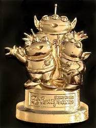Little Green Men is an Open Edition pin from the Golden Statue pin series. It was originally released on , 2013 and was available from Hong Kong Disneyland .