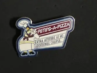 Pete’s-A-Pizza is a Limited Edition (LE) 1000 pin from the Mickey and Friends pin series. It was originally released on , 2004 and was available from Walt Disney World .