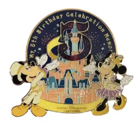 Mickey Minnie 5th Birthday Celebration Memories Spinner is a Limited Edition (LE) 500 pin from the Shanghai Disney Resort 5th Anniversary pin series. It was originally released on , 2022 and was available from Shanghai Disney Resort .