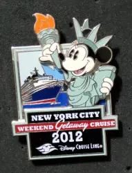 New York City weekend Getaway Cruise 2012 is a Limited Release pin from the Port of Departure: New York City pin series. It was originally released on , 2012 and was available from Disney Cruise Line .