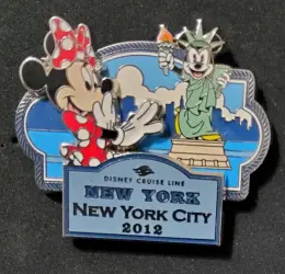 New York City 2012 is a Limited Edition (LE) 1000 pin from the Port of Departure: New York City pin series. It was originally released on , 2012 and was available from Disney Cruise Line .