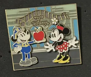Mickey and Minnie in front of the store is a pin from the World Of Disney (NYC) pin series. It was available from Disney Store US .
