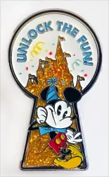 Keyhole Glitter Castle - Unlock the Fun! is a Limited Edition (LE) 2000 pin from the Mickey 90th Celebration pin series. It was originally released on , 2018 and was available from Multiple Sources (WDW, DLR, etc.).