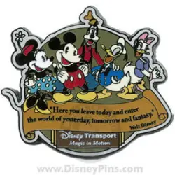 Disney Transport Magic in Motion is a Limited Edition (LE) 2500 pin from the Cast 2008 Legacy Fair pin series. It was originally released on , 2008 and was available from Walt Disney World .