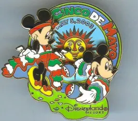 Mickey & Minnie is a Limited Edition (LE) 2000 pin from the Cinco de Mayo pin series. It was originally released on , 2003 and was available from Disneyland Resort .