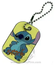 Stitch is a Limited Edition (LE) 1000 pin from the Spotlight - Dog Tags pin series. It was originally released on , 2008 and was available from Walt Disney World .