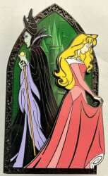 Pin features Aurora and Maleficent from Sleeping Beauty