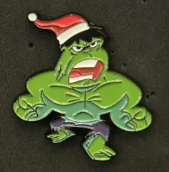 Santa Hulk is an Open Edition pin in the Avengers Holiday 6-Pin Set 1-pin set from the Marvel Holidays pin series. It was originally released on , 2020 and was available from an Officially Licensed Disney trading pin vendor (see description for more information).