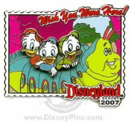 Huey, Dewey, Louie on Heimlich's Choo Choo Train is a Limited Edition (LE) 1000 pin from the Wish You Were Here! - Postcards from Disneyland pin series. It was originally released on , 2007 and was available from Disneyland Resort .