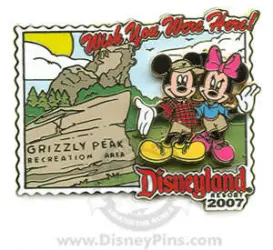 Mickey and Minnie at Grizzly Peak is a Limited Edition (LE) 1000 pin from the Wish You Were Here! - Postcards from Disneyland pin series. It was originally released on , 2007 and was available from Disneyland Resort .